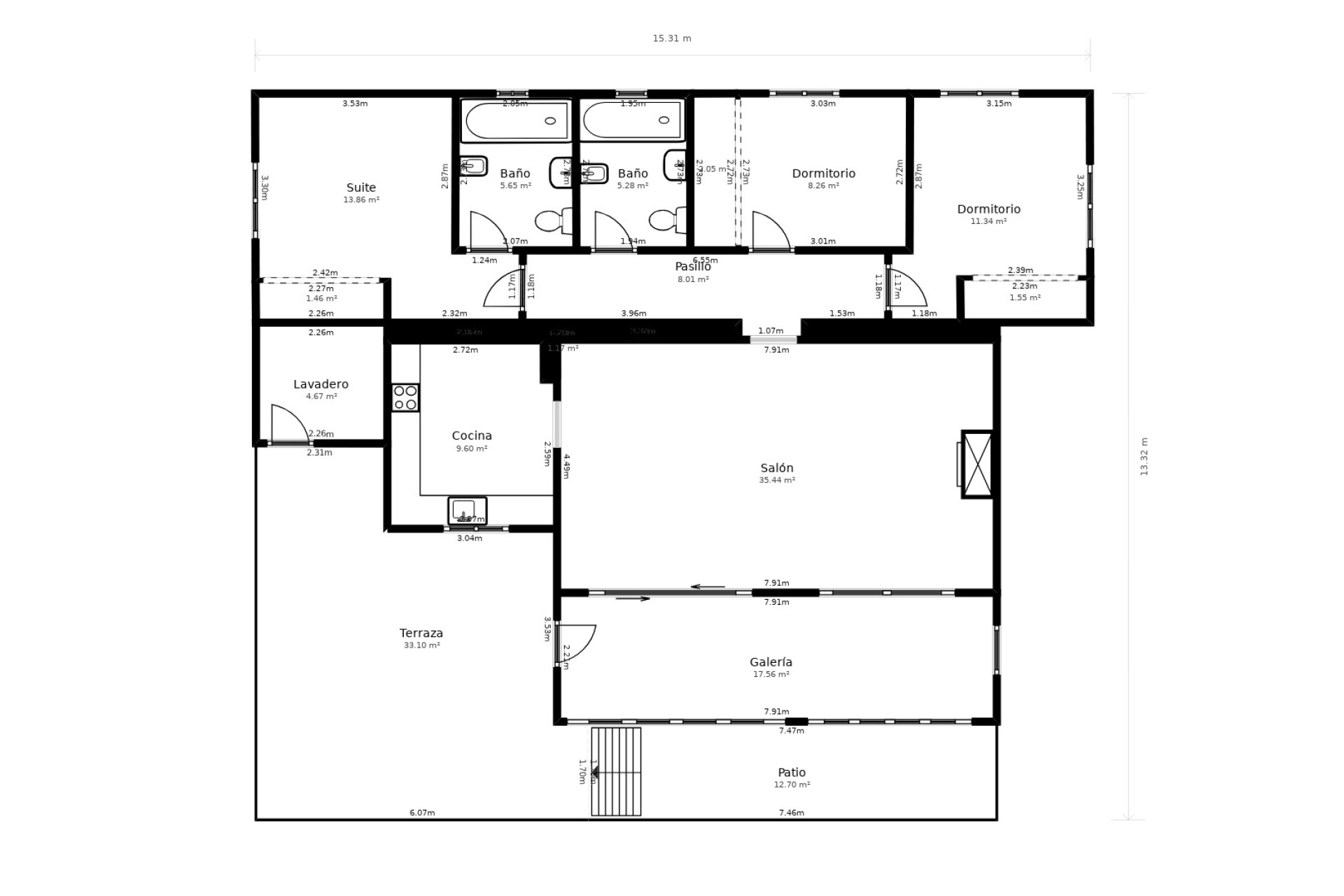 En el exterior, encontrará una piscina privada de 9x4,5m, situada para aprovechar al máximo la orientación sureste. La terraza de la piscina goza de sol todo el día, por lo que es un lugar ideal para relajarse o comer al aire libre. Además, con la opción de calentar la piscina, podrá disfrutar de la natación durante todo el año. Las hermosas vistas desde la terraza se extienden a través del campo circundante hasta el pueblo y más allá, con pintorescas vistas de vides que se suman a la atmósfera serena.