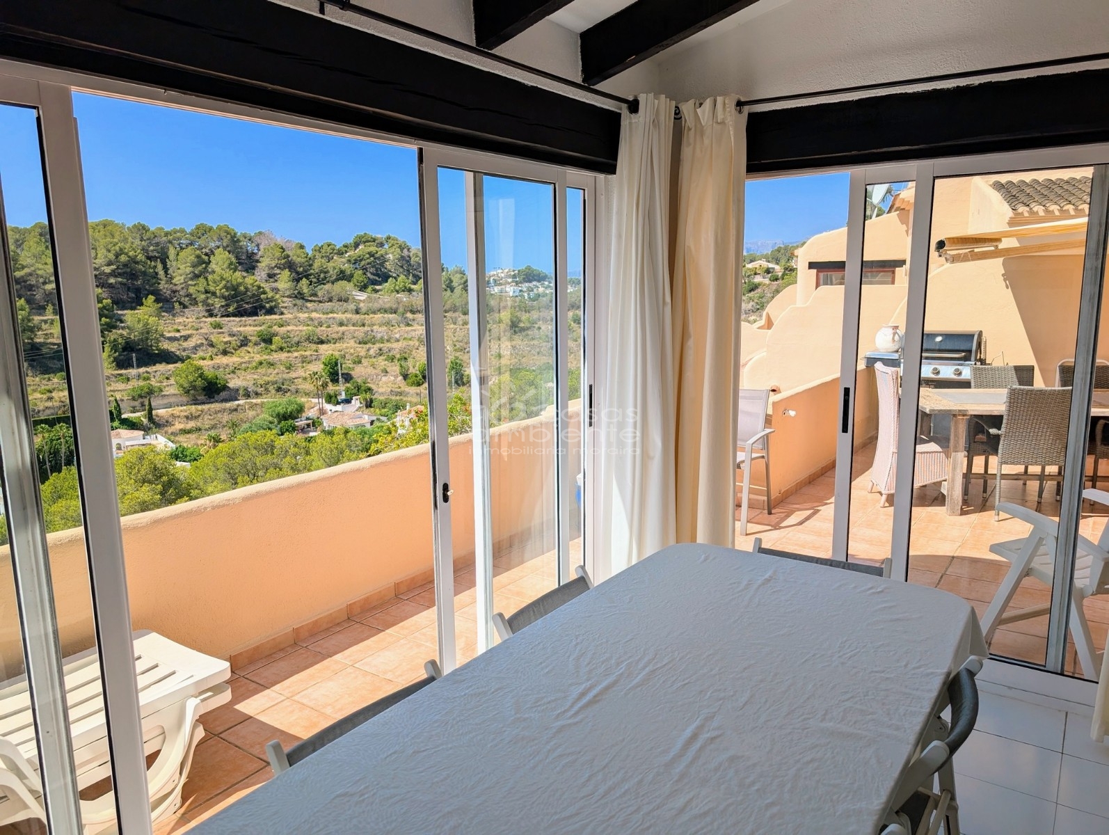 Esta luminosa y espaciosa villa disfruta de impresionantes vistas al mar y a la montaña, con sol durante todo el día. Distribuida en dos niveles, se encuentra en una comunidad tranquila y segura, a pocos pasos de la piscina comunitaria recientemente renovada y a pocos minutos en coche de supermercados, la playa y el centro del pueblo. La entrada principal es fácilmente accesible por un camino llano desde la plaza de aparcamiento asignada.