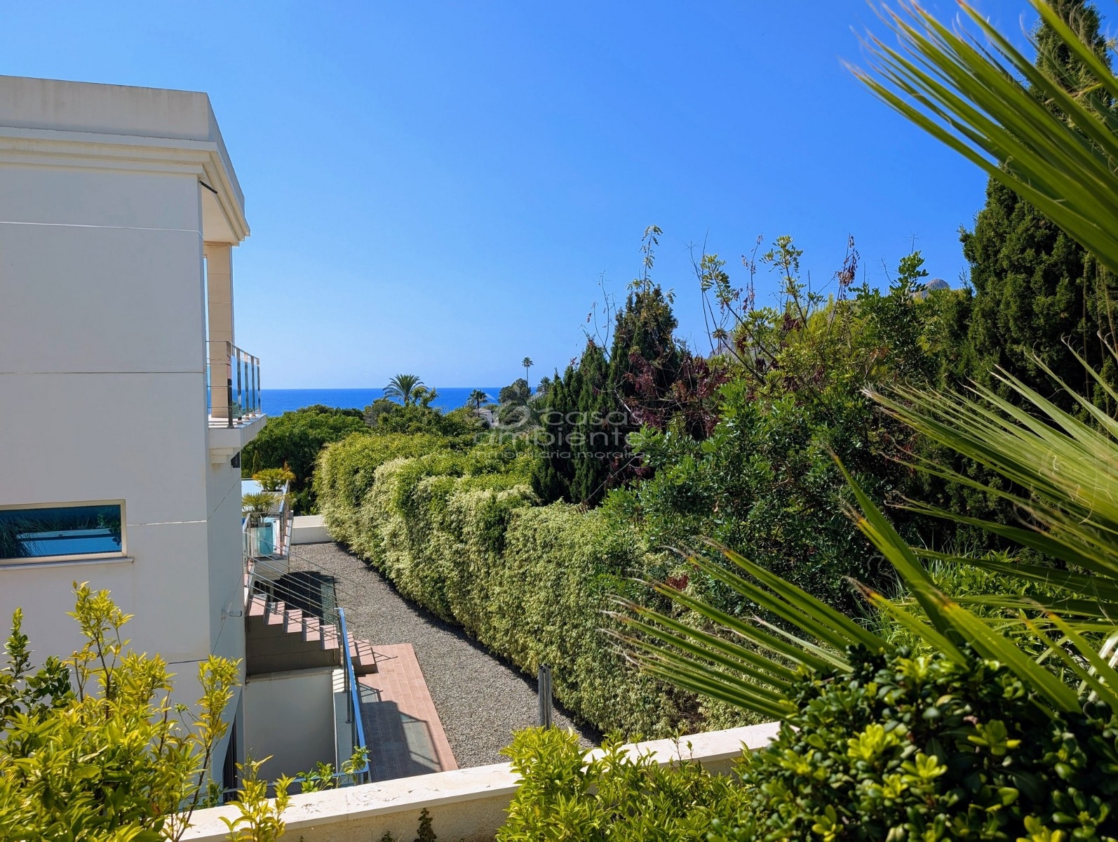 La planta superior alberga tres dormitorios (con posibilidad de un cuarto). Dos dormitorios dobles, uno con vistas al mar, cuentan con armarios empotrados y baños en suite. El dormitorio principal dispone de amplio vestidor, balcón con vistas al mar, mueble para TV y baño en suite con almacenamiento adicional. El semisótano incluye lavandería con trastero y acceso a un amplio garaje, además de una zona de bienestar que puede funcionar como cuarto dormitorio con sauna, mesa de masajes y baño.