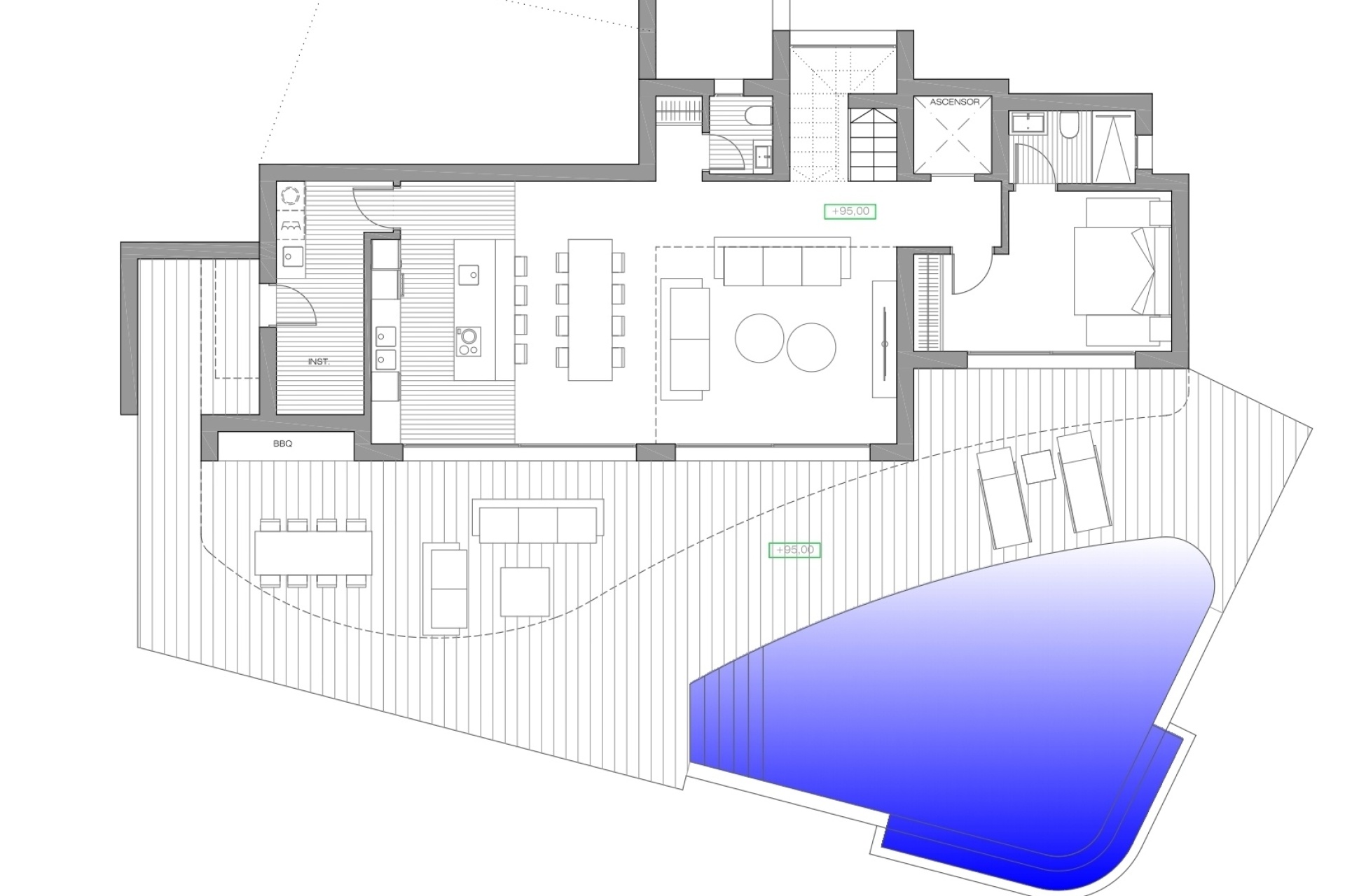 Piscina climatizadaAscensor que conecta todas las plantasSistema de aerotermia de última generación para suelo radiante, aire acondicionado y agua caliente sanitariaPlacas solares instaladas en la cubiertaLa villa se distribuye en tres plantas, conectadas mediante escalera interior y ascensor.