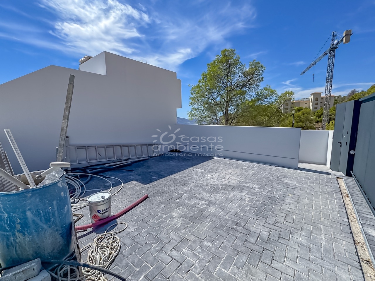Cette villa contemporaine luxueuse, presque achevée, est située dans le prestigieux quartier résidentiel d'Altea Hills, réputé pour ses vues imprenables sur la mer et son environnement paisible. Construite sur un terrain de 979 m², avec une surface totale de 412,6 m² plus 200 m² de terrasses, cette superbe propriété s'étend sur trois niveaux et allie à la perfection design moderne, confort et style méditerranéen. La villa a été conçue pour maximiser la lumière naturelle et l'espace, avec de grandes baies vitrées qui offrent une vue panoramique sur la mer depuis chaque pièce. Le salon, la salle à manger et la cuisine ouverts offrent un accès direct à de spacieuses terrasses et à la spectaculaire piscine à débordement. La cuisine est entièrement équipée avec des appareils électroménagers de haute qualité, et une buanderie offre un confort supplémentaire. Il y a quatre chambres doubles, toutes avec salle de bains privative, armoires encastrées et accès à des terrasses privées, ainsi qu'un vestiaire pour les invités. La propriété comprend le chauffage au sol, la climatisation réversible et un ascenseur interne reliant tous les niveaux.