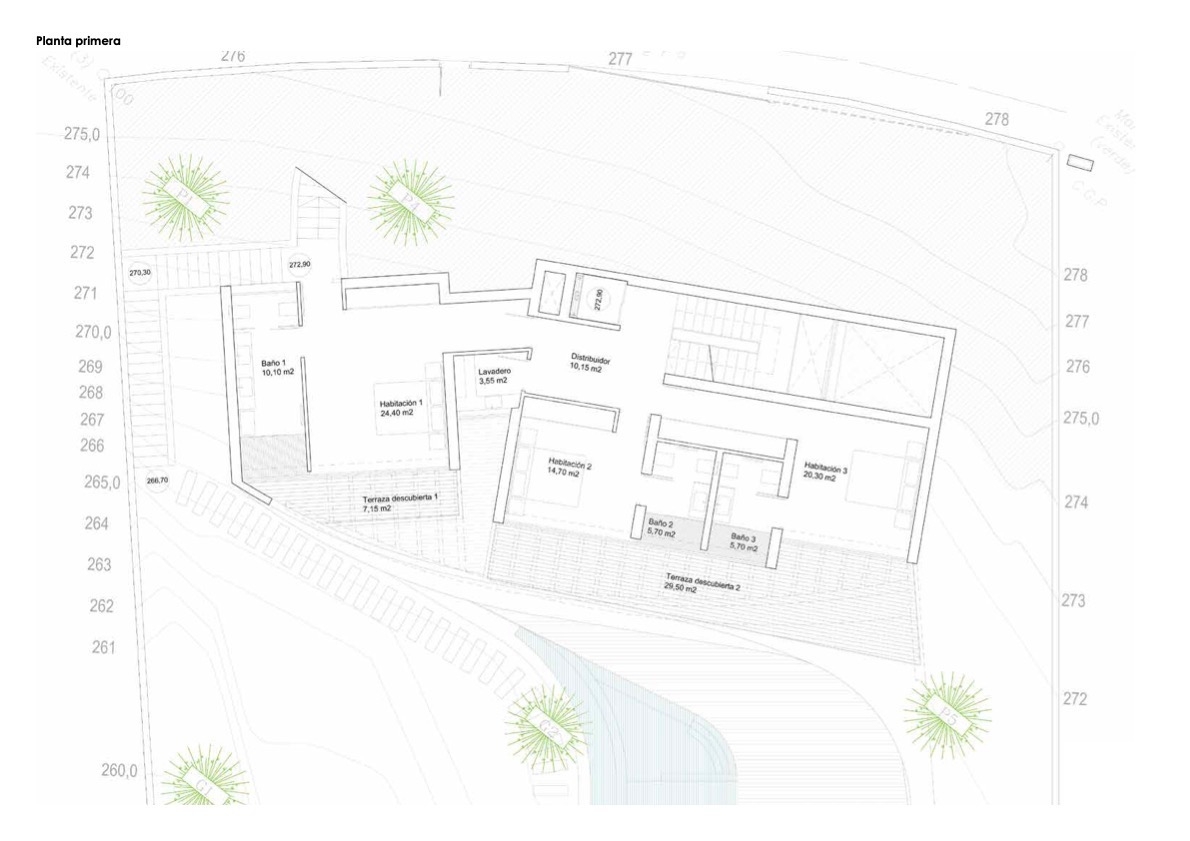 • Terrain : 979 m² | Surface construite : 412,6 m² | Terrasses : 200 m²