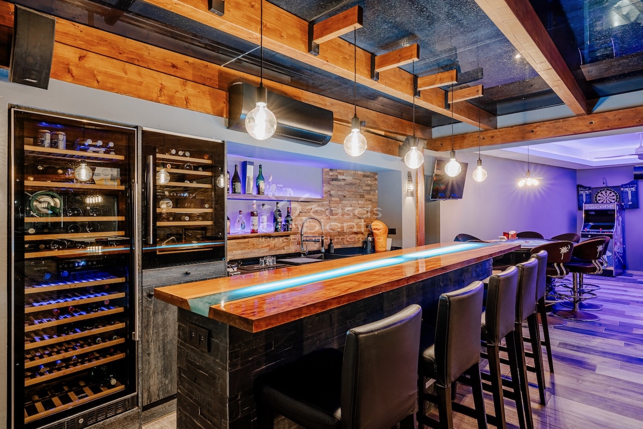 Au niveau inférieur, la villa continue d'offrir une flexibilité exceptionnelle, avec un espace de loisirs, une deuxième cuisine et trois chambres supplémentaires avec salle de bains privative, ainsi qu'une entrée séparée pour les invités. Un appartement indépendant offre une autonomie totale, avec sa propre cuisine, son salon, sa chambre avec salle de bains privative et son accès à une véranda. La propriété comprend également un grand salon de divertissement avec un espace jeux et un système de son surround, conçu pour s'intégrer parfaitement aux espaces extérieurs et à la vue sur la mer.