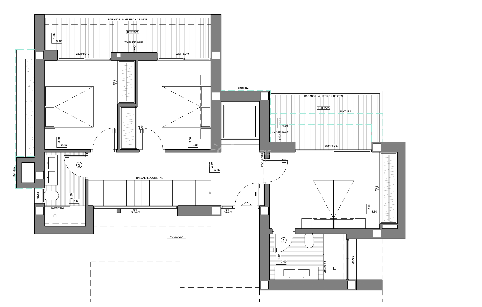 De volgende verdieping is gewijd aan de slaapkamers, die allemaal toegang hebben tot privéterrassen met een prachtig uitzicht en veel natuurlijk licht.