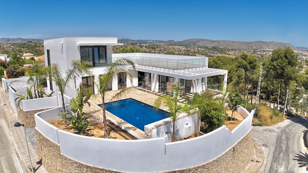 Afgewerkte moderne villa gelegen op een hoekperceel van 817 m² in Moraira, Benimeit.