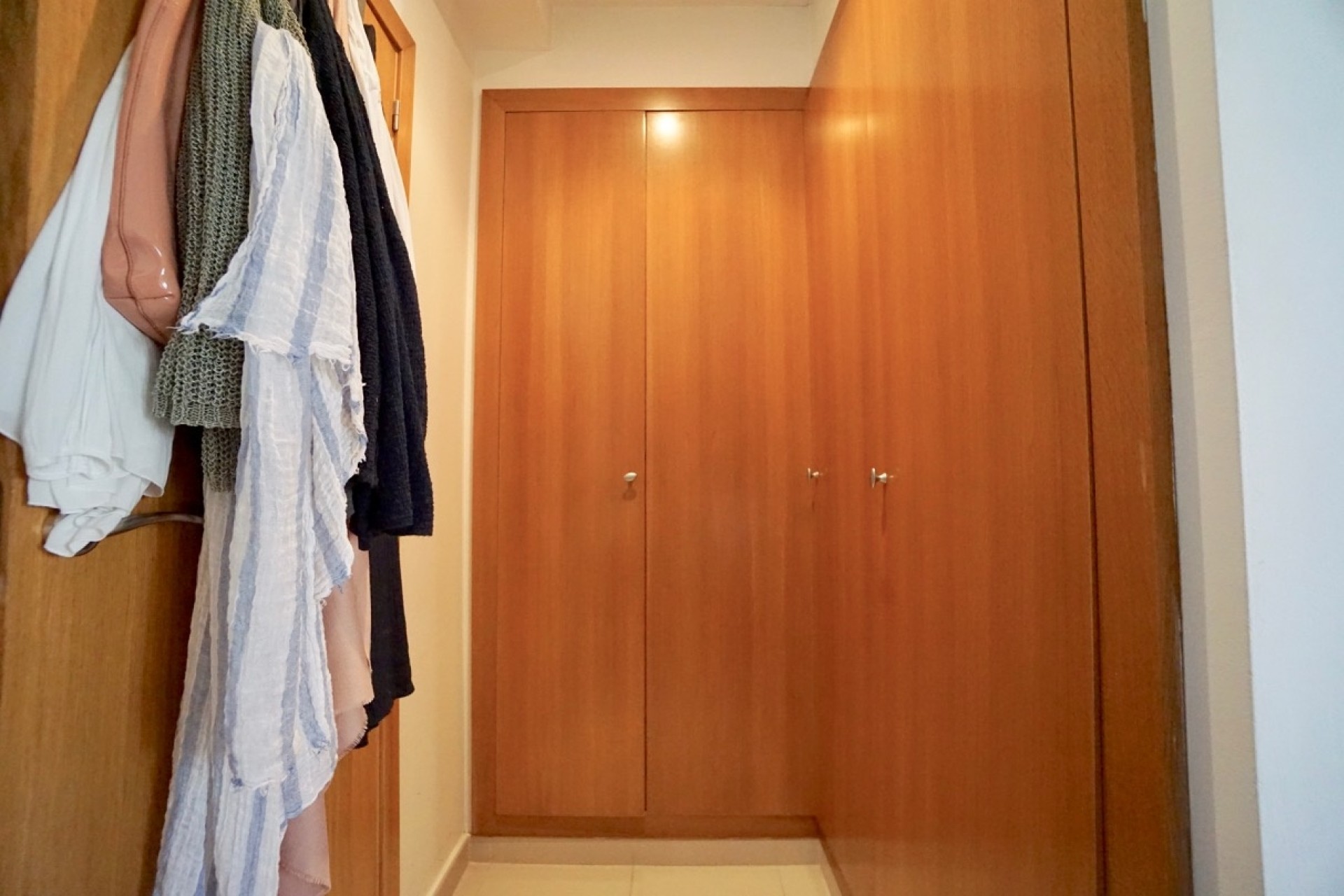 One level up you reach the three double bedrooms, and two bathrooms, one of them en-suite to the master bedroom with own small balcony.