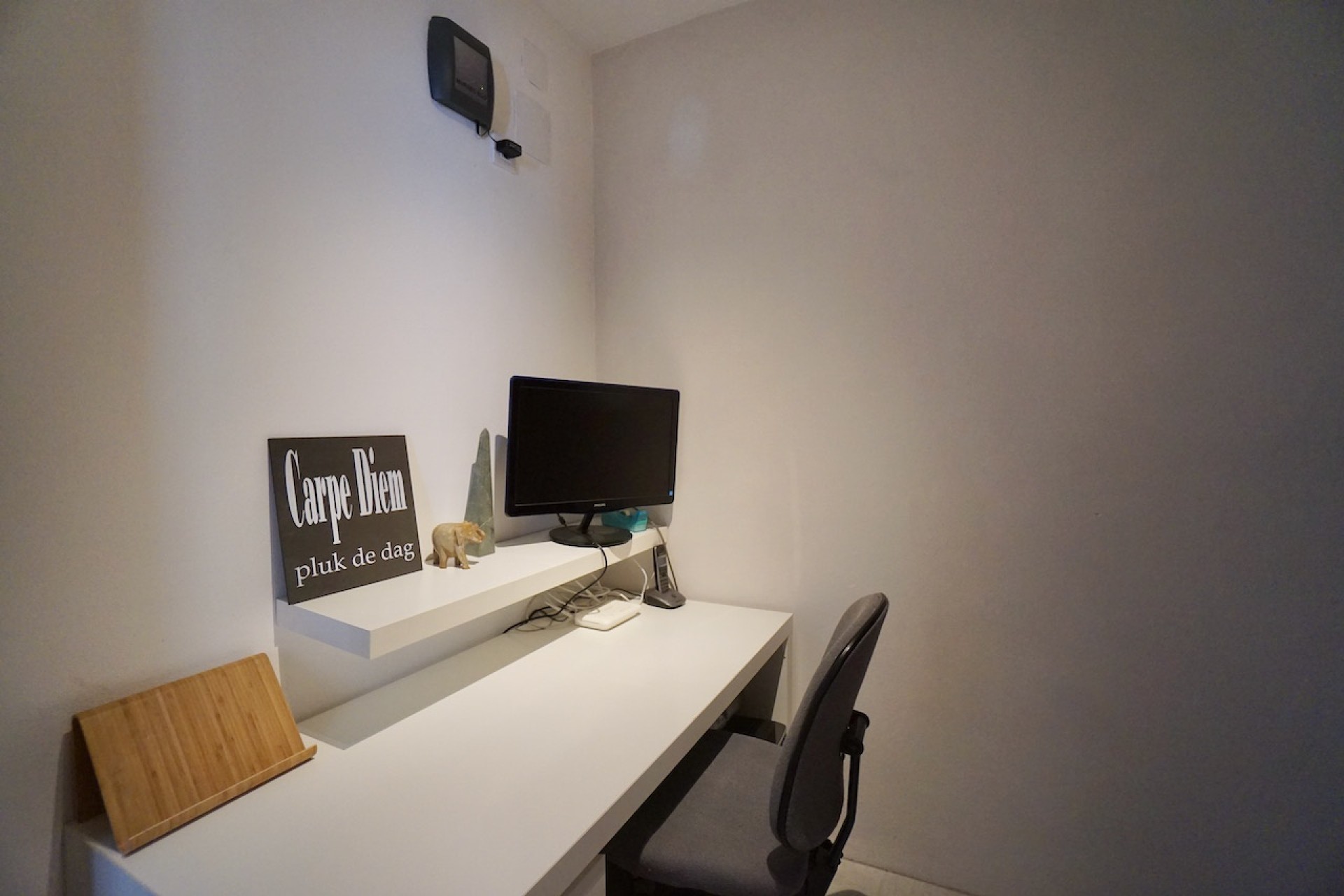 French doors open into a living and dining area, with the eco-friendly log-burning fireplace connected to the underfloor heating on the ground floor and radiators on the first floor, which leads into a 2nd sitting or TV area. From the main living/dining area, a door takes you into the modern, spacious fully-fitted kitchen with integrated appliances. The Master bedroom is also on this level, with en-suite shower room, two sets of built-in wardrobes and a door which leads into a laundry room with access to the courtyard. From the 2nd sitting area, a door takes you into an office and an adjacent store room, and French doors lead out to the internal courtyard with the main entrance, partially covered, steps to the upper level, and the technical room which includes the boilers, all the controls for the heating system, solar energy and electric panels.