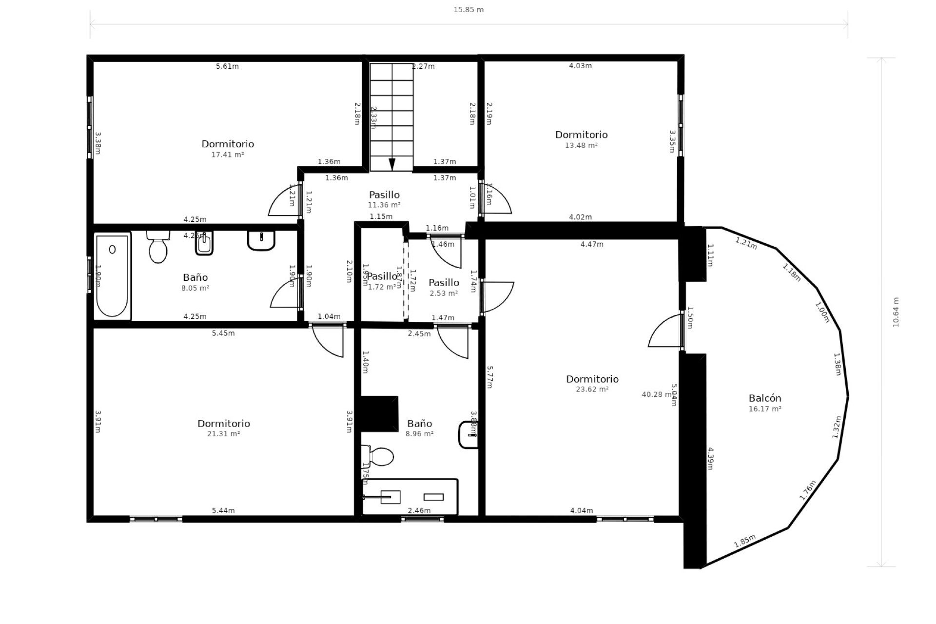 A staircase leads up to the other bedrooms. At the front you find a double bedroom, currently used as an office, the spacious master bedroom with the ensuite bathroom with walk-in shower and a big balcony with beautiful Sea views. On the other side are two more double bedrooms, one used as a dressing room/office and a very spacious double. In between is the family bathroom.