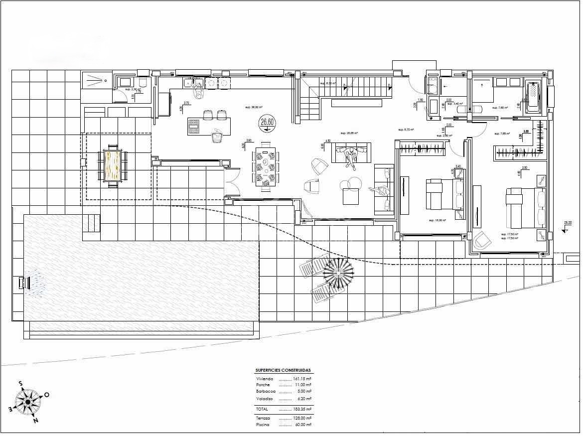 The villa will be fully equipped with underfloor heating and centralised air conditioning, there will also be solar panels and the property will have an energy label A. There will also be an alarm with pre-installation for cameras. All bedrooms will have fitted wardrobes and electric shutters.