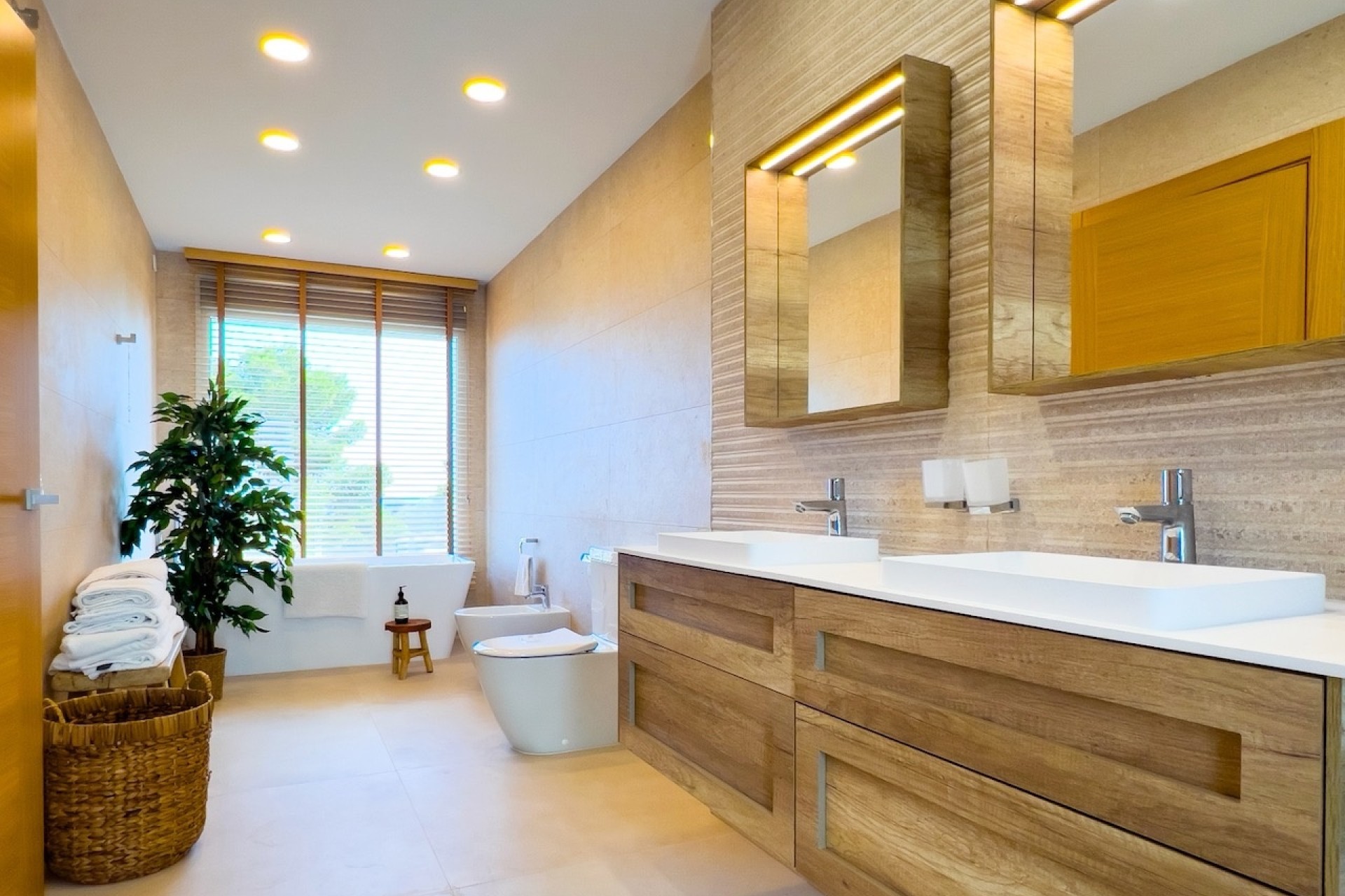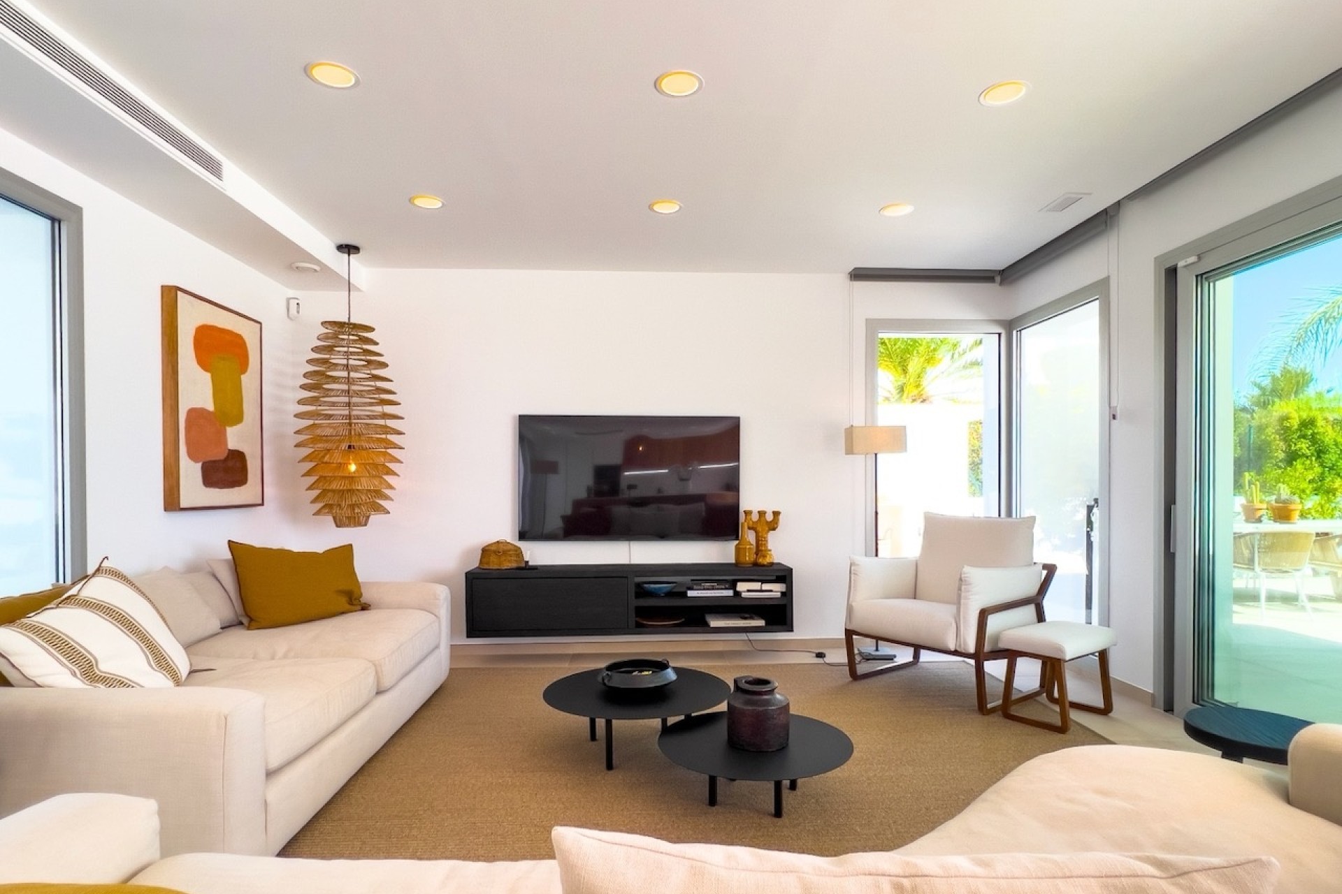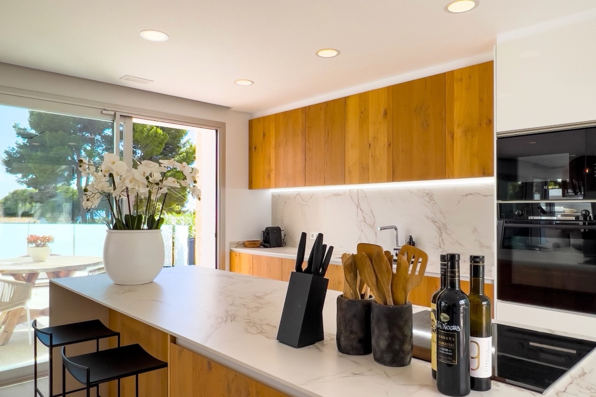 The villa is carefully designed over two floors connected by internal stairs, providing 377 m² of built space on a 1,077 m² plot. It features four spacious bedrooms, including three en-suite bathrooms, and a bright living and dining area that seamlessly connects to a modern kitchen. Expansive covered and open terraces, a summer kitchen, and a private infinity pool of approximately 40 m² make this home ideal for entertaining or enjoying the Mediterranean lifestyle year-round.