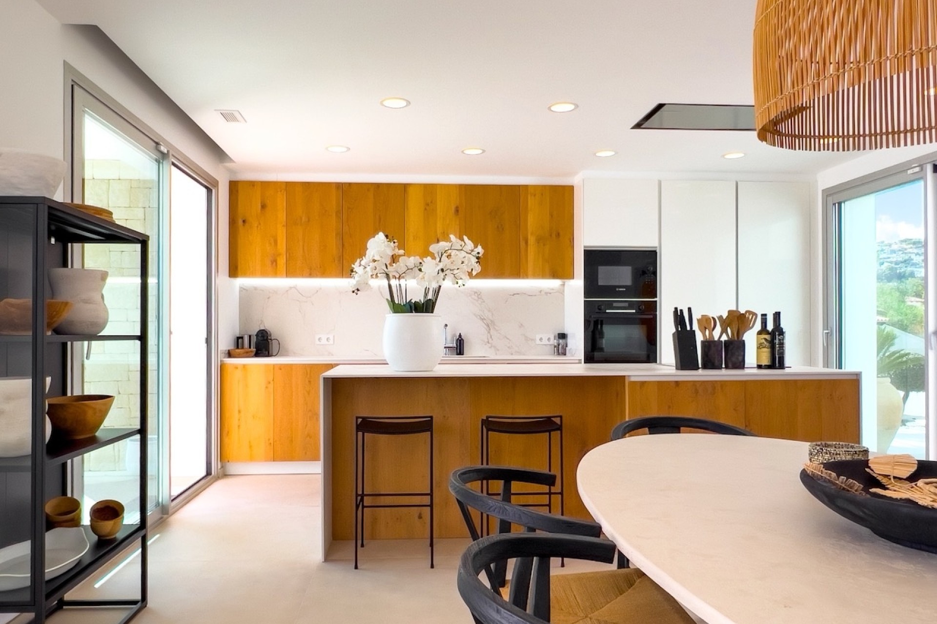This stunning contemporary villa, built in 2021, is located in the desirable Tabaira urbanisation of Moraira. With a prime south-facing orientation, the property boasts breathtaking panoramic views of the Mediterranean Sea. Just 1.2 km from the beach and 1.4 km from the centre of Moraira, this villa offers the rare advantage of being within walking distance of both the beach and the vibrant town atmosphere.