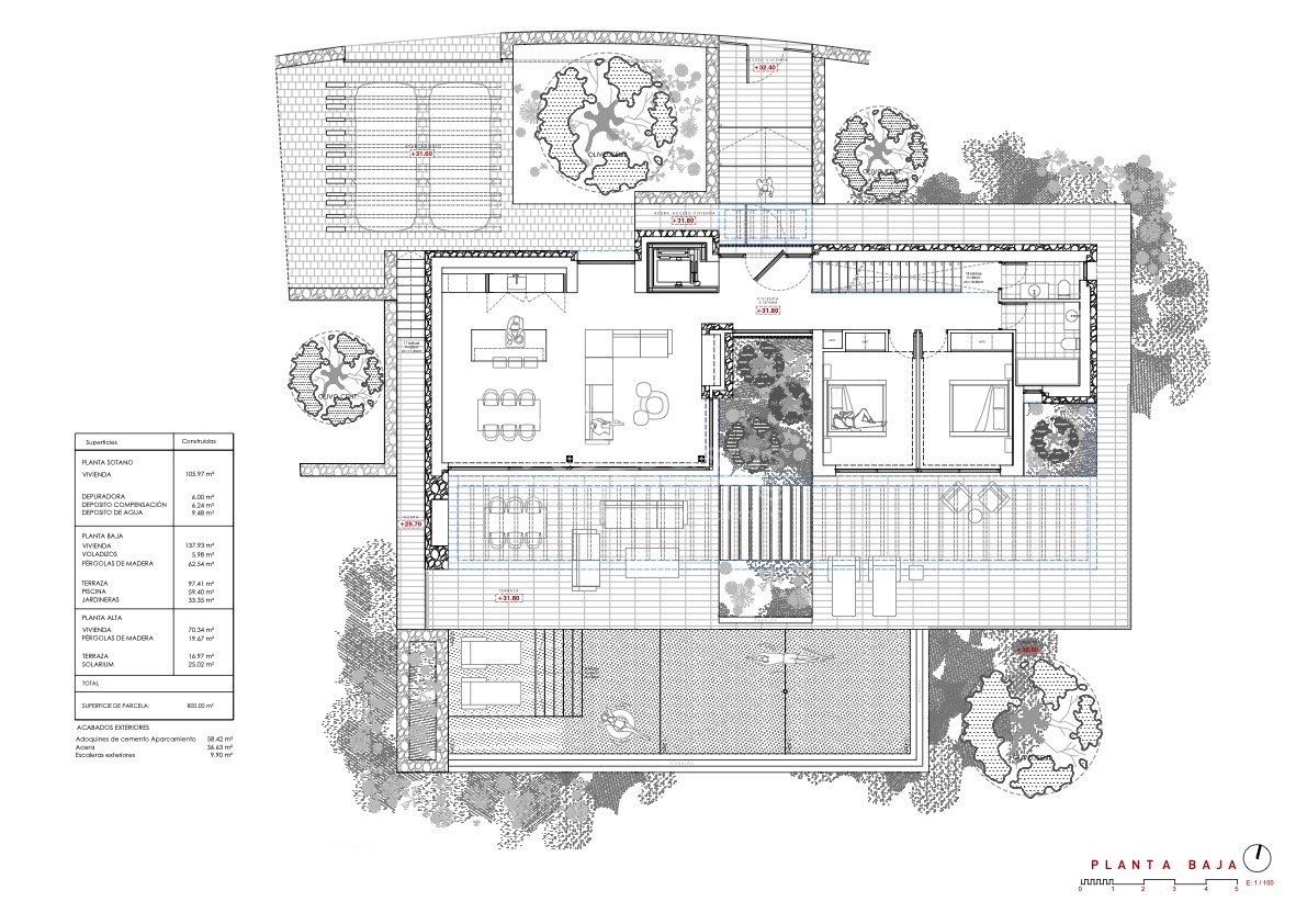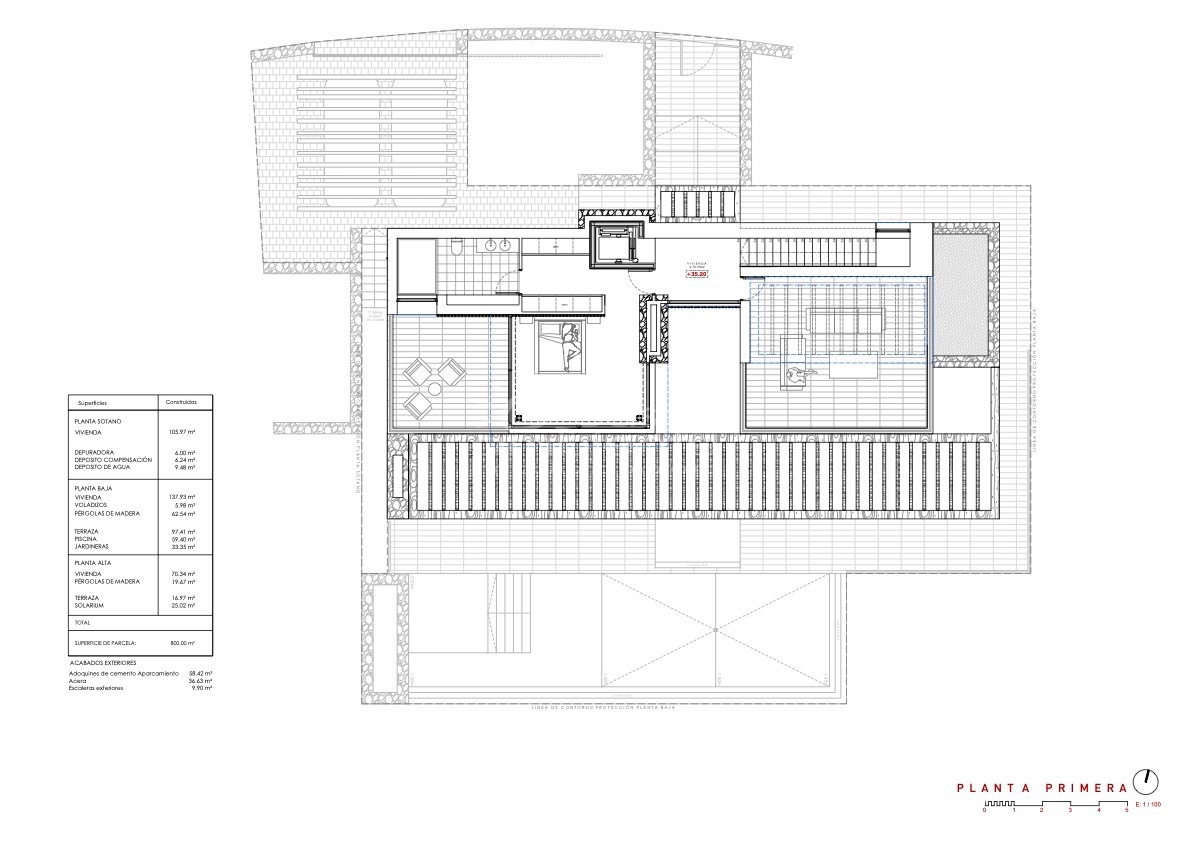 Just 300 metres from the beautiful La Fustera Beach and within walking distance to restaurants, bars, and all amenities, this brand-new villa offers an extraordinary blend of natural materials, refined design, and modern comfort. It sits on an 800 m² plot in a quiet residential street, surrounded by contemporary homes and just 800 metres from the golf course. With panoramic sea views and a southeast orientation, this property perfectly captures the essence of Mediterranean living.