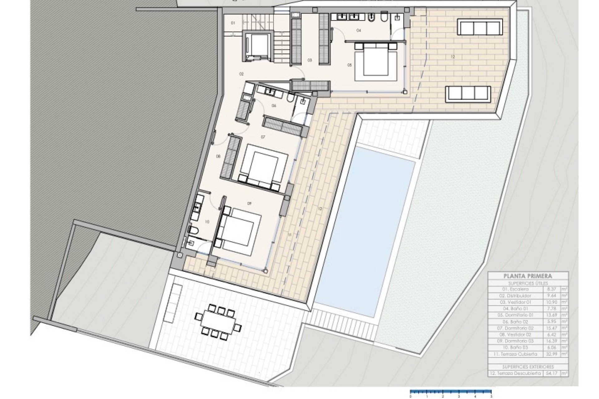 This exceptional new-build villa, set for completion at the end of this year, represents the perfect blend of cutting-edge design, comfort, and Mediterranean sophistication. Located in a privileged position with panoramic sea views, the property offers exceptional quality and luxury across three levels, with a built area of 328 m² on a 1,348 m² plot. Designed to maximise light and space, the villa features floor-to-ceiling windows throughout, ensuring breathtaking sea views from every room.