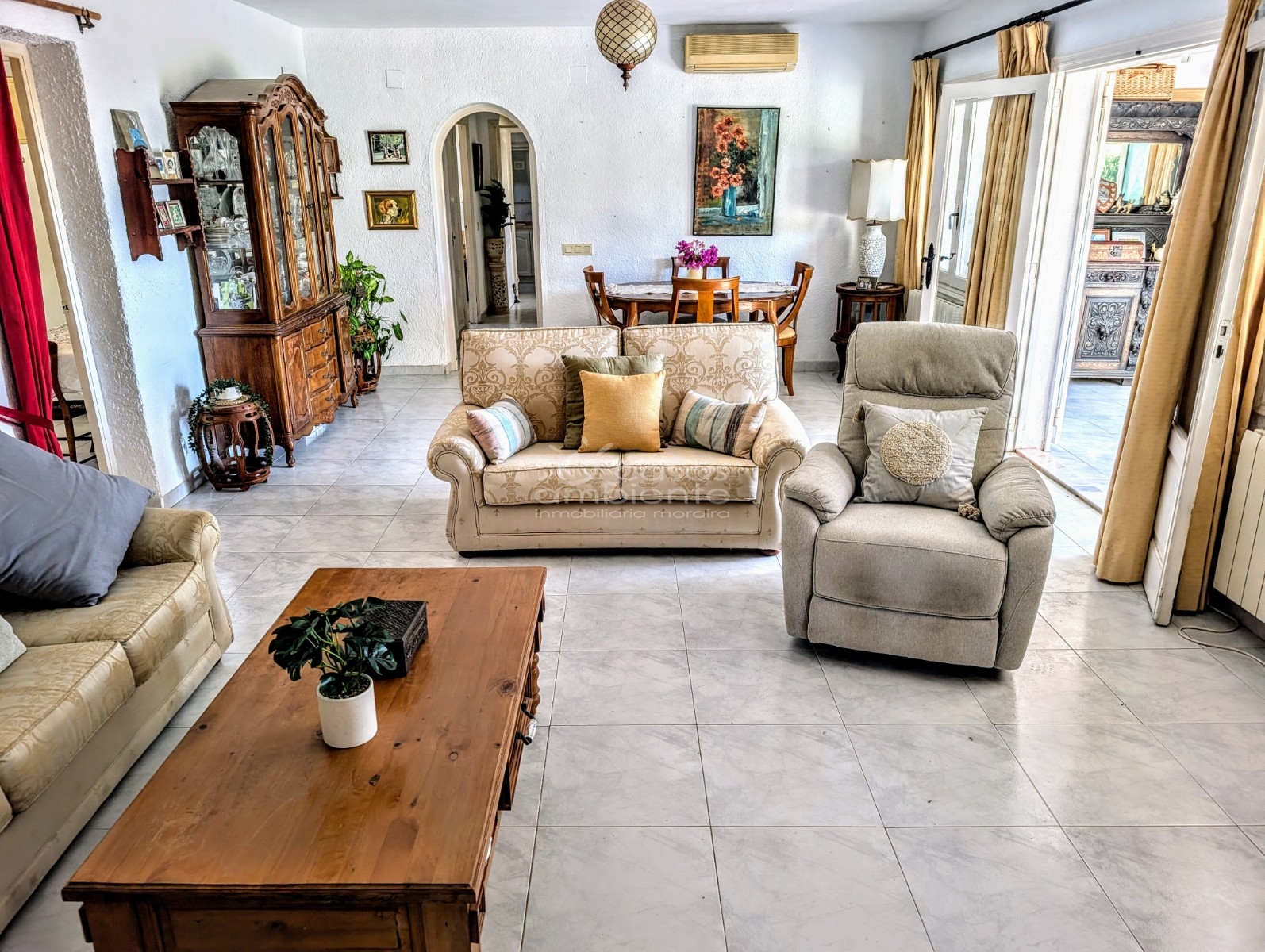 Discover this single-level villa—a true sanctuary offering panoramic sea and mountain views just moments from the town centre. Perfectly situated on a substantial, fully fenced plot, this property offers effortless living and absolute privacy. Arrive in style via your palm-lined, private driveway through an electric gate, instantly leaving the world behind on this very quiet country lane. The home flows beautifully, starting with a superb covered open BBQ terrace and into the spacious chef's kitchen/breakfast room. Here you'll find stunning Blue Pearl granite worktops, abundant storage, and all the appliances you need. The kitchen leads seamlessly into the spectacular living/dining room, a showstopper featuring a cozy wood-burner fireplace and an elegant barrel ceiling with beams. Step through double glass doors into the sun-drenched, glazed naya for year-round enjoyment, which leads to a charming south-facing open terrace. The Ultimate Private Retreat The sleeping quarters are an absolute dream. The magnificent master suite is a private world unto itself, featuring a luxurious en-suite bathroom with double basins and a heated towel rail, and an expansive walk-in dressing room with ample storage. The spacious bedroom boasts its own private glazed naya, where you can soak up the uninterrupted views across the valley to the sparkling Mediterranean Sea and majestic mountains. Two additional double bedrooms (one currently used as an office) and a stylish house bathroom with a walk-in shower complete the layout. Outdoor Oasis and Practicality The allure continues outside. Bask in the sun on the large pool terrace or relax under the pergola, enjoying all-day sun and glorious views. The generous, two-level rustic plot is fully fenced with two independent entrances. The upper garden level is a unique bonus, offering a large natural expanse of land with dual sea and mountain vistas, complete with a secondary vehicle gate—perfect for easy access and storage of a mobile home or boat. Practicality is covered with a rear garage and a large storage shed. This rare combination of space, single-floor convenience, and spectacular views makes this villa a must-see lifestyle opportunity. - Key points:- Built 1990- Owners since 2011- Gas central heating- Air conditioning- Part double glazed with mosquito nets- Offered partially furnished- Garage and ample parking- Annual taxes to follow- To avoid disappointment you need to visit this property quickly