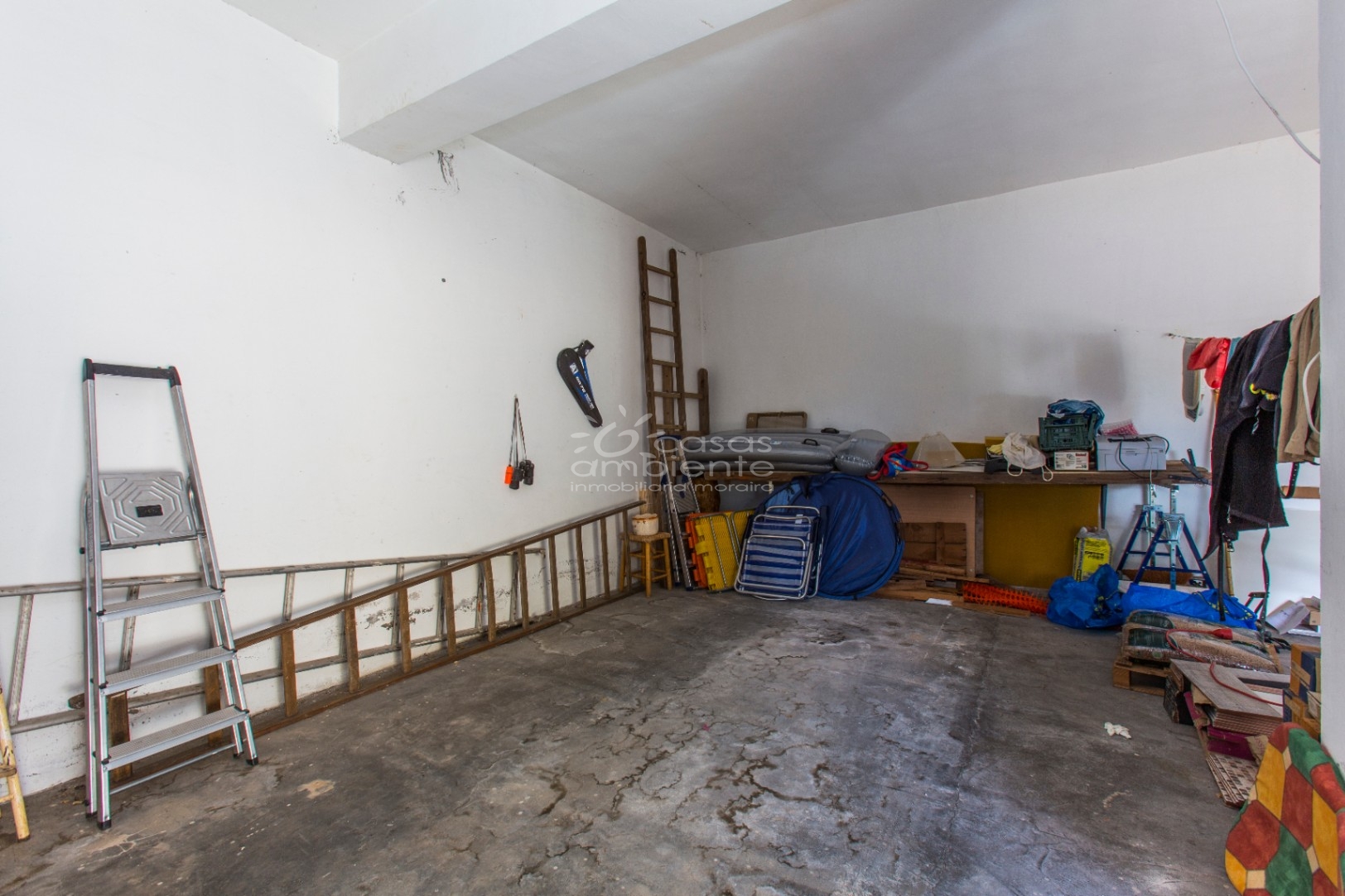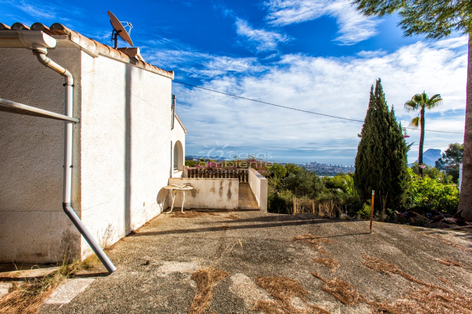 Villa with double plot and excellent sea view in Calpe. Spacious living area, large garage, possibilities for renovation and swimming pool. Located in the quiet Oltamar area of Calpe, this villa stands on a double plot, suitable for buyers looking for space, privacy and future possibilities. With beautiful sea views from Moraira to the Peñon d'Ifach, this property is ready to move into and also has potential for further development. Description Upon arrival at the villa, the two garage doors immediately catch the eye. They give access to a very spacious garage of almost 60 m², ideal for several cars, a hobby room or storage. A staircase leads to the living area. You enter the house through the glazed naya: a spacious conservatory with beautiful sea views. Adjacent is the living-dining room with direct access to a large terrace on the side of the house. Again with excellent sea views. The separate kitchen is well-equipped and practically laid out and has a walk-in storage cupboard. There are also two double bedrooms and a renovated bathroom. The house has partial double glazing, pellet heating in the living room and air conditioning in the master bedroom. It is habitable in its current state, but has clear potential for upgrading, which would increase the comfort and value of the property. The garden requires a thorough refurbishment and offers sufficient space for the construction of a swimming pool. Special features Double plot of approx. 830 m² + 1,304 m²Very beautiful sea viewDouble garage of approx. 60 m²Space for swimming poolWhy view this villa Various development opportunitiesQuiet locationSolid basis for renovation or extensionThe parents of the current owner built this villa for themselves and enjoyed living there for many years. The house was a real home to them, and they hope that the new owner will find the same feeling here. Would you like to know more about the possibilities? Book a viewing or ask one of our sales specialists for more information.