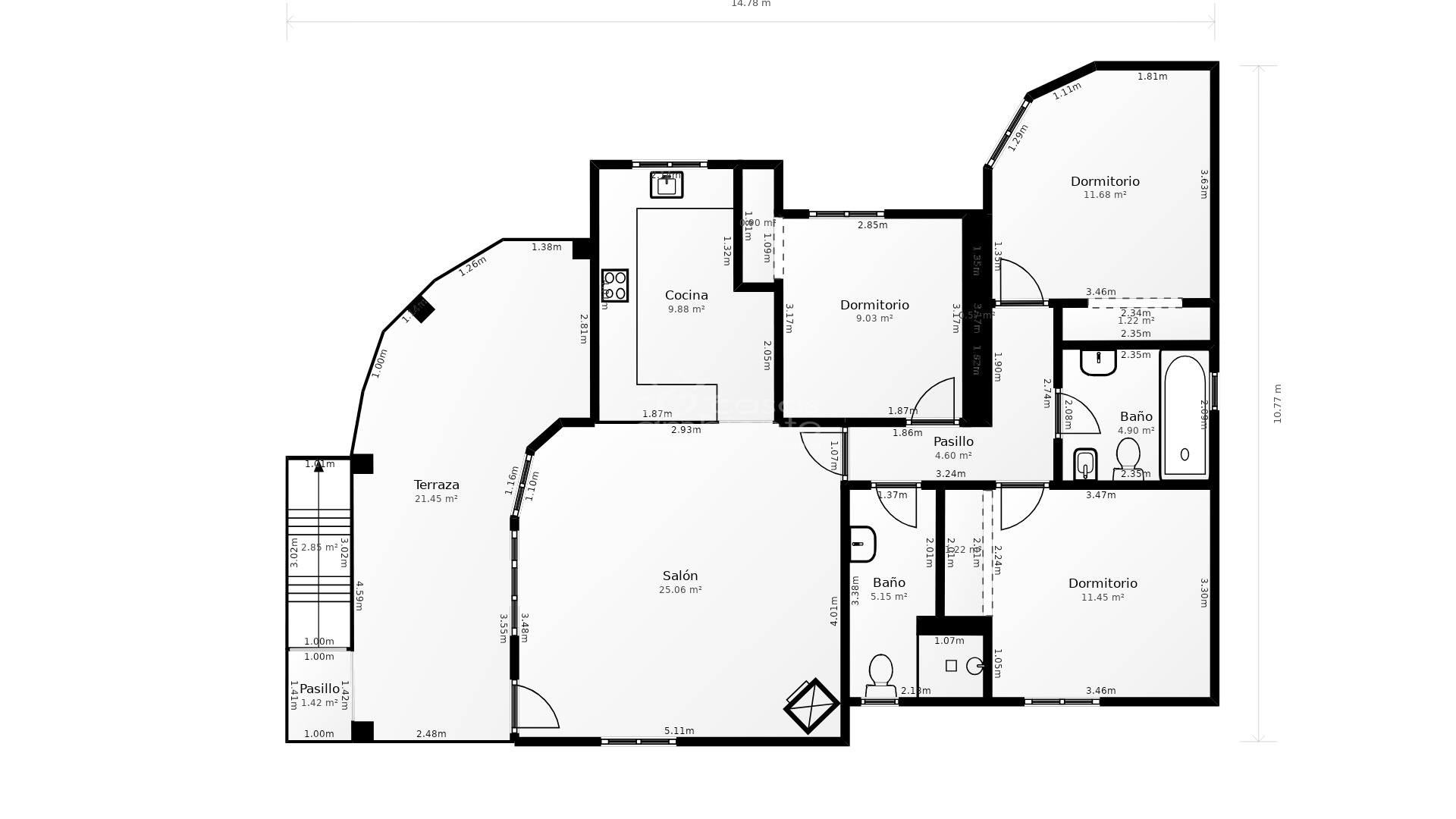 A characteristic staircase leads you up to the elevated terrace, which boasts stunning sea views. This spacious terrace provides direct access to the entrance of the villa and is the perfect spot to unwind while taking in the beautiful surroundings.