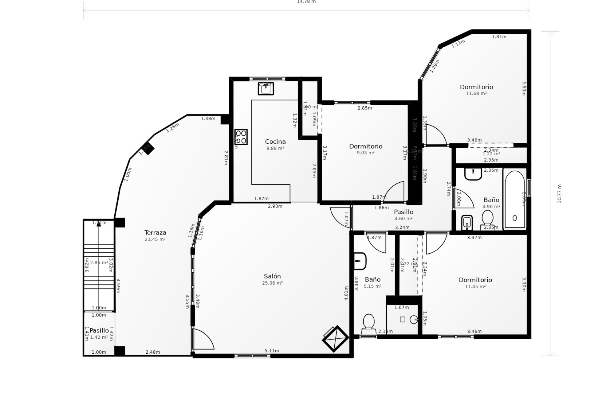 A characteristic staircase leads to the upper terrace, where you are rewarded with beautiful sea views. This spacious terrace is an ideal place to relax and provides direct access to the entrance of the villa.