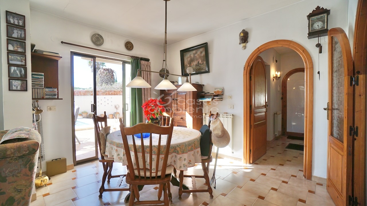 This attractive single-storey villa is set on a flat plot just 150 metres from the sea and within a 15-minute walk of the Centre of Moraira. Facing south, the property offers comfortable living with easy access to the terraces, pool and garden.