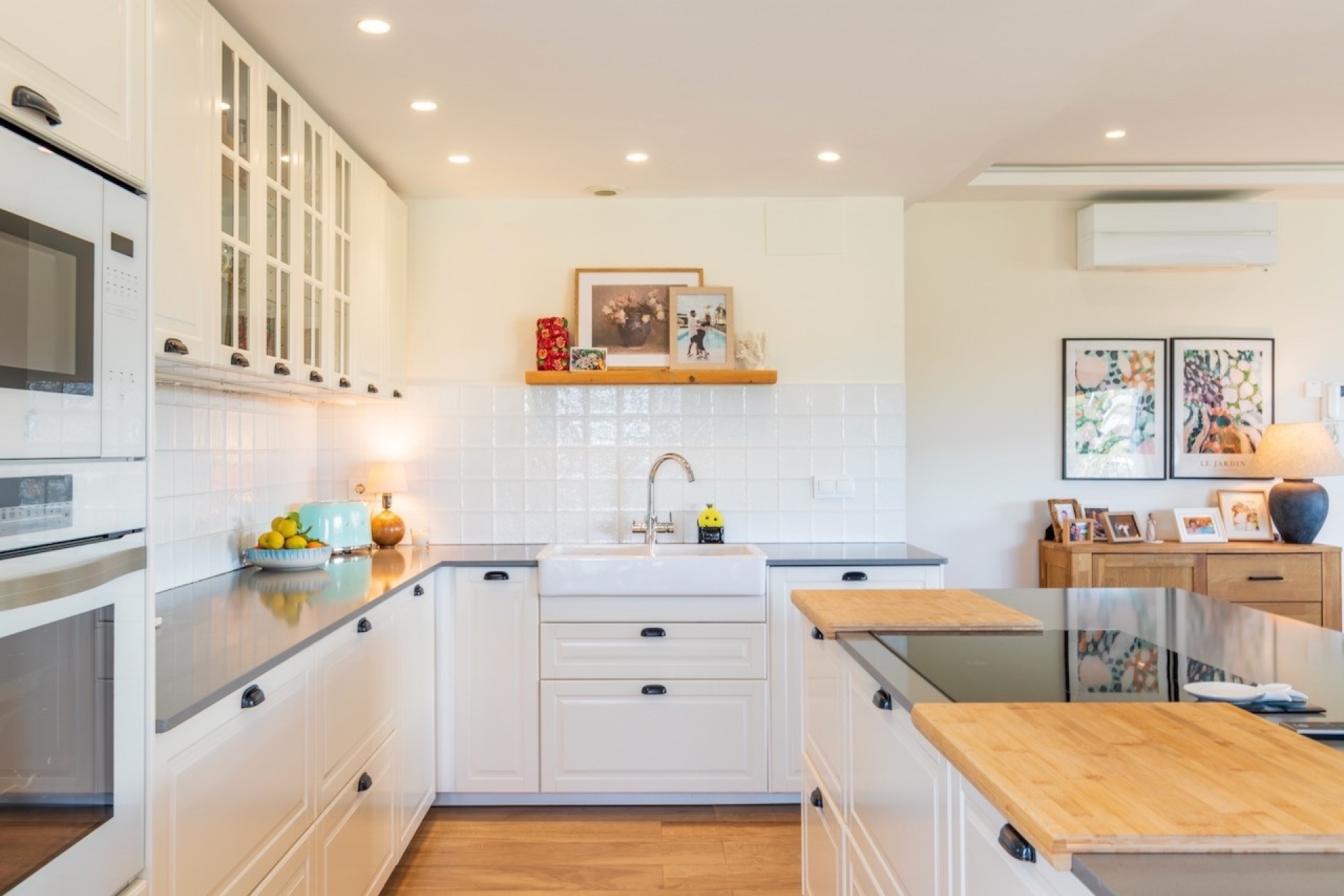 Nestled in the quiet and sought-after neighbourhood of Adsubia in Jávea, this fully renovated Ibiza-style villa offers a perfect combination of privacy, elegance, and modern comfort, with all amenities and the sea just minutes away. Upon entering the main floor, you are welcomed into a bright and spacious open-plan living area with a fully equipped kitchen, designed for both style and functionality. Three comfortable bedrooms and two modern bathrooms (one en-suite) are arranged on this level, along with a glazed naya, providing an ideal space to enjoy the Mediterranean climate throughout the year. The lower floor includes a fully independent guest apartment with living room, kitchen, bedroom, and bathroom, as well as a versatile gym with its own bathroom that can easily be converted into an additional bedroom. Additional storage and technical rooms complete this level, offering practicality and flexibility.