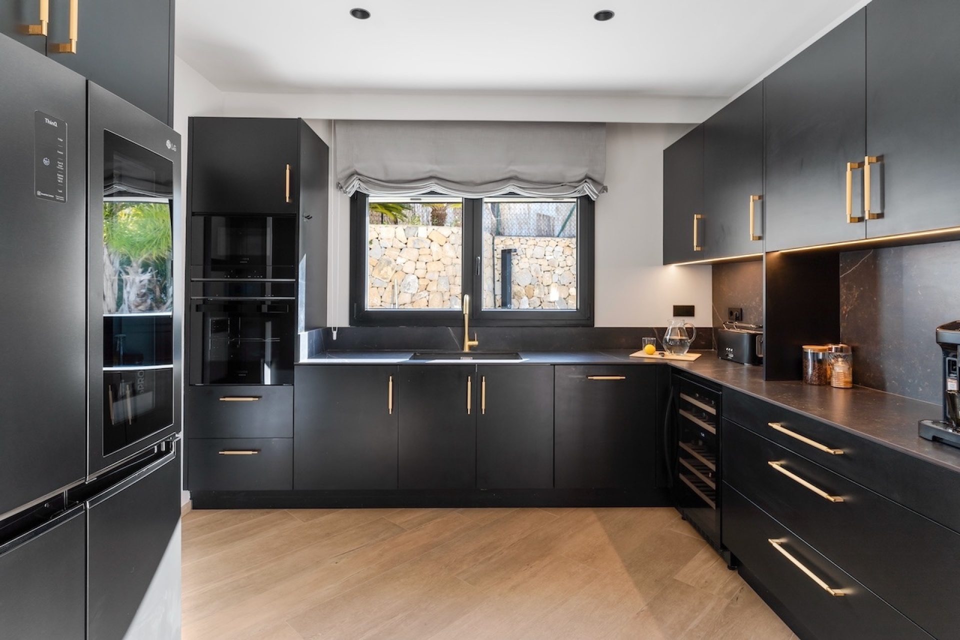 The property is finished with high-quality materials throughout and is equipped with underfloor heating, air conditioning, solar panels, an alarm system, electric shutters and ample storage space, ensuring year-round comfort and efficiency. Additional features include a double garage and electric gate.