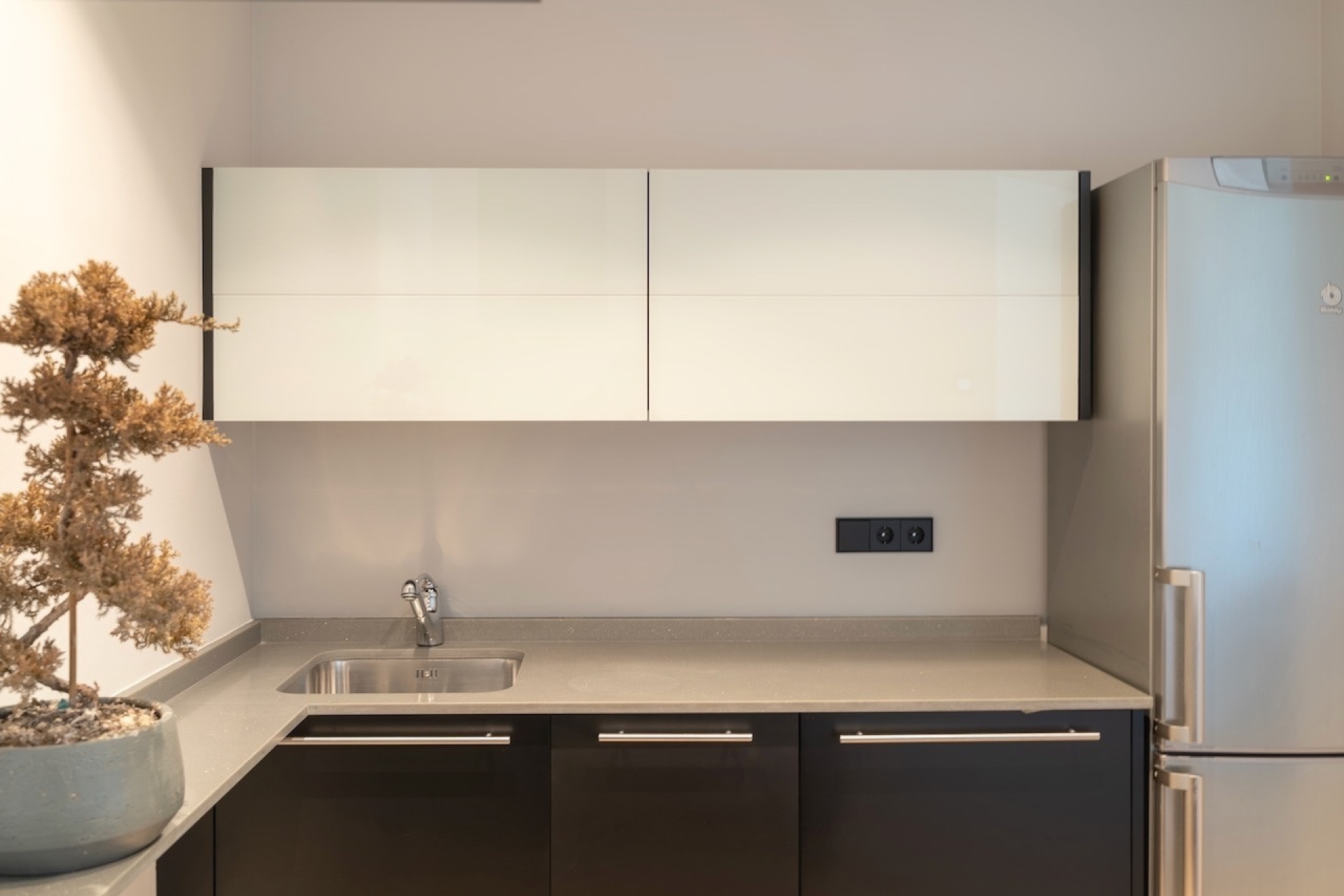 On the main level there is also a guest toilet. The lower level offers two spacious bedrooms, each with its own en-suite bathroom, along with a versatile studio complete with a kitchen and office area, ideal for guests or easily convertible into an additional bedroom.