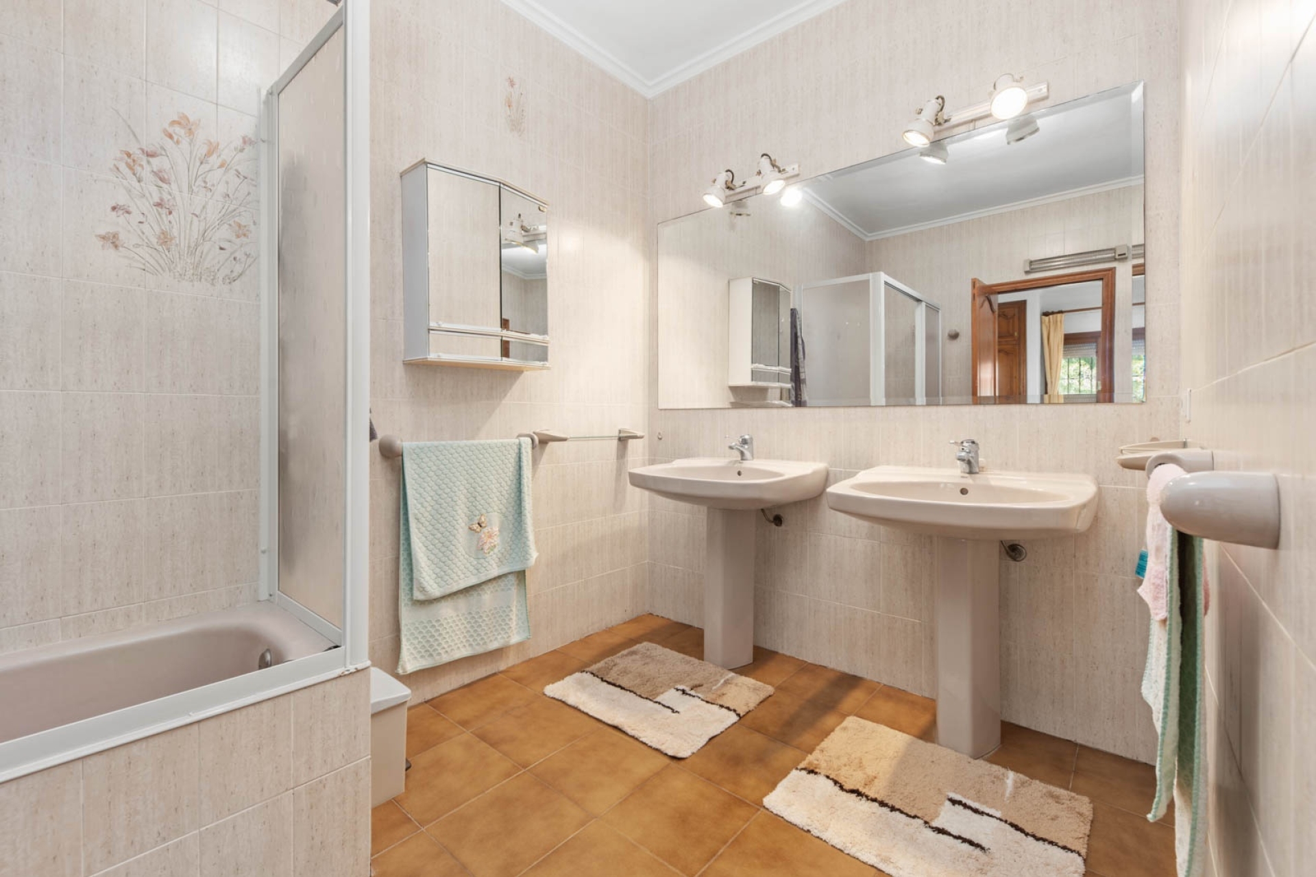 We access the house through the glazed porch with beautiful wooden beams, from here a double wooden door leads us to the dining room, next to it we have a spacious living room with fireplace, which also has access to the outside. On the other side of the dining room, we have a fully equipped kitchen, as well as the laundry room, a guest bathroom and two large bedrooms with fitted wardrobes, one of them with an en-suite bathroom.