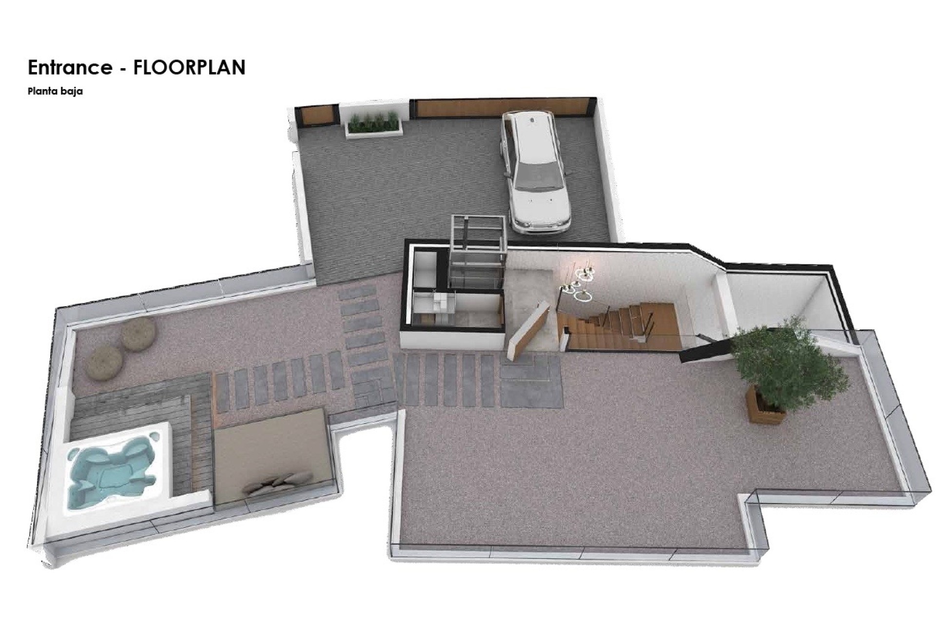 The ground floor boasts 1 double bedroom with en-suite, 1 guest toilet and a 66m2 day space: kitchen and living room open onto a covered terrace and the chill out area with amazing infinity pool and Jacuzzi. The first floor is a sleeping and resting area: 3 en-suite bedrooms including the master bedroom with large open terraces.
